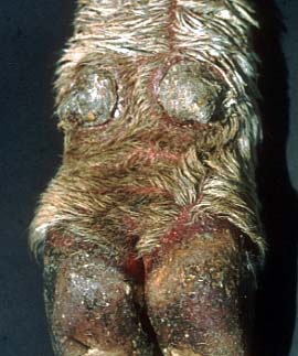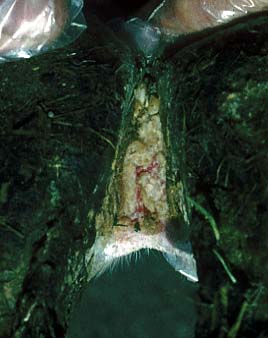 Zwischenklauenspalt: die Haut ist stark erodiert