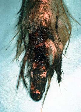 Spätstadium: die Schwanzspitze ist auf ca 7 cm Länge nekrotisch.
