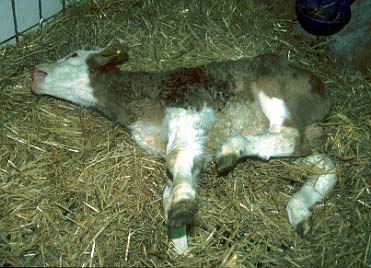 Kalb, das Krampfanfälle zeigt und dabei laut blökt.